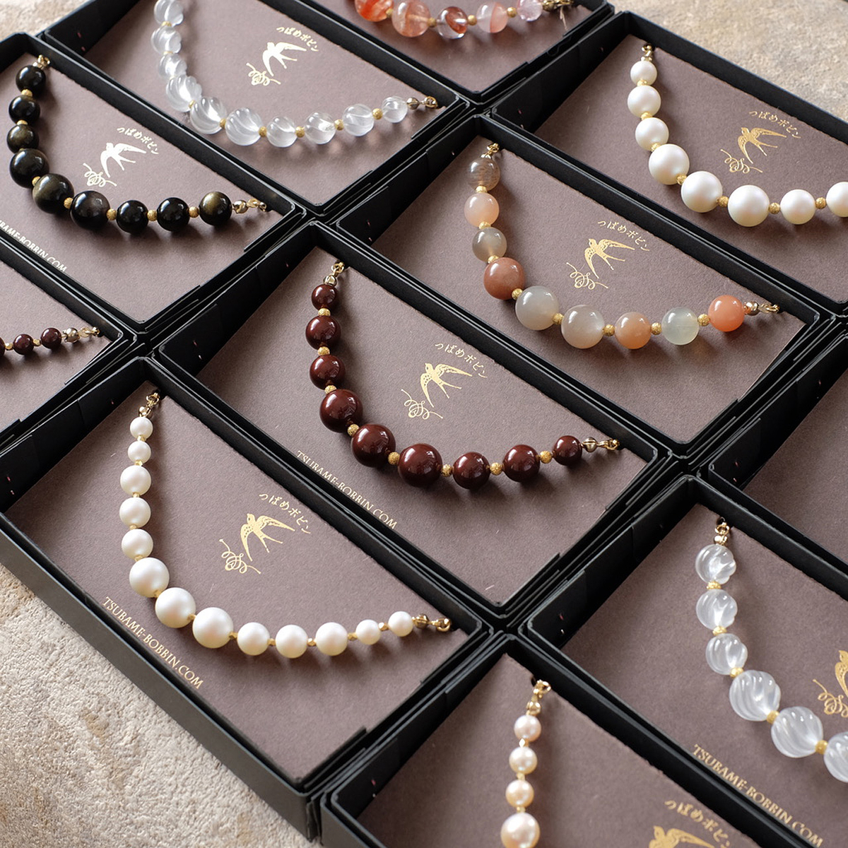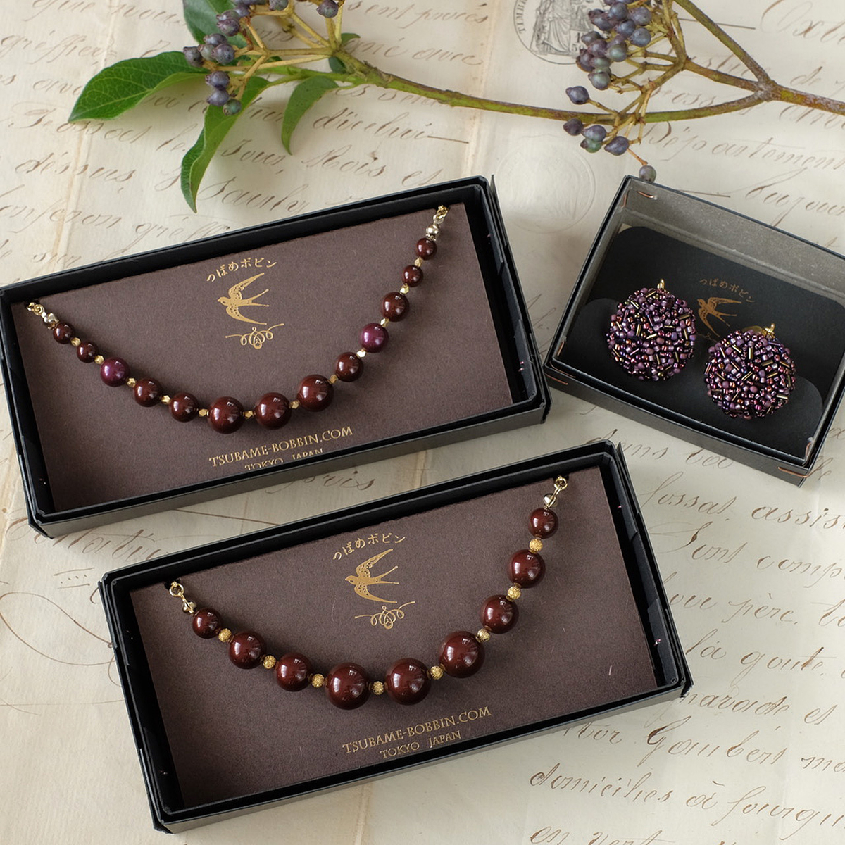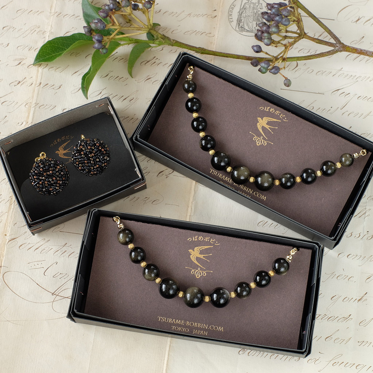 *ちなみに、スワロフスキー社のパーツを使った作品は、同社のパーツ事業からの撤退により、素材が手に入らなくなりつつあり、つばめボビンでも素材の在庫限りで終了の予定です。