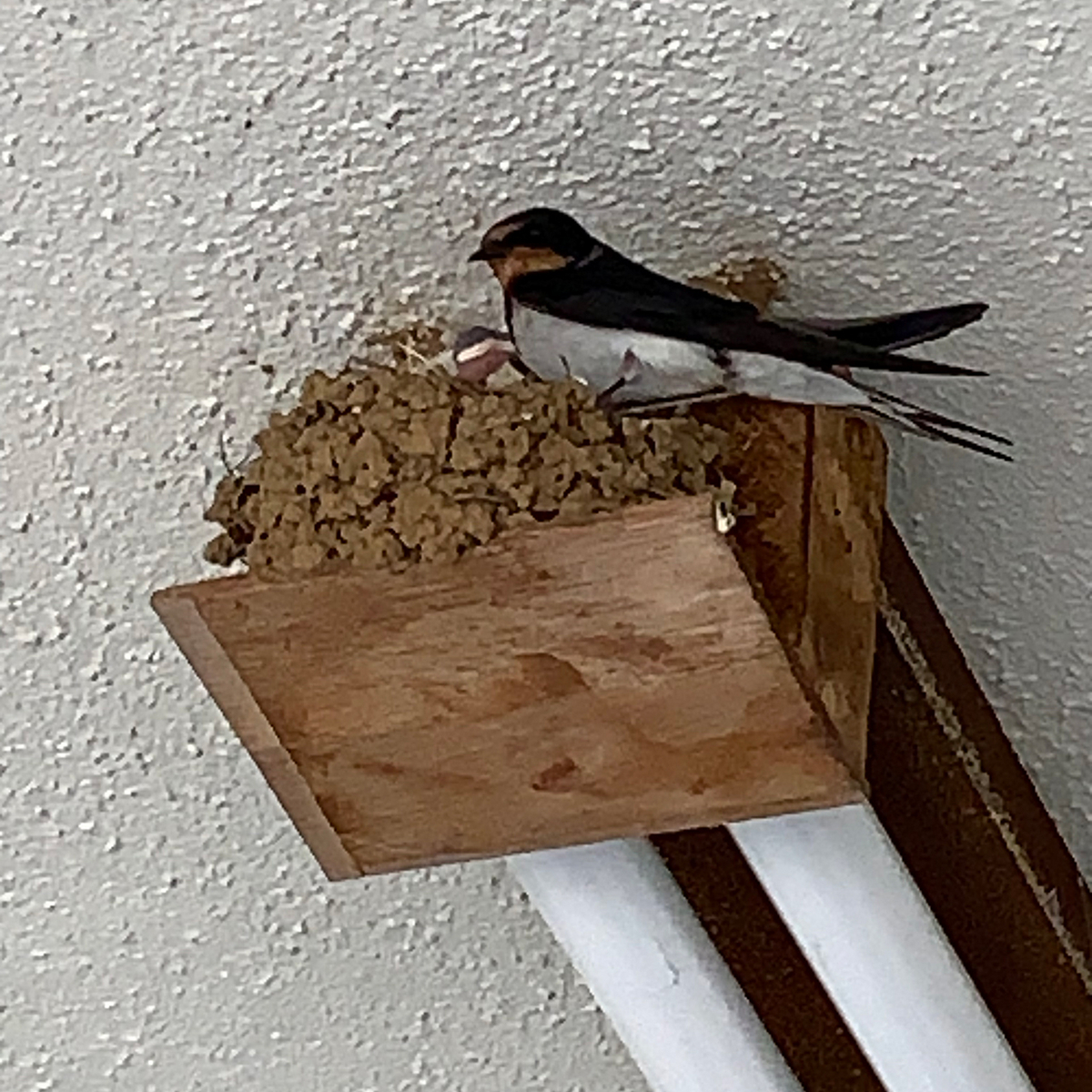 駐車場の天井には以前にもつばめが巣を作ったことがあったのか、木の板がL字型にいくつか設えてあって、まるでどうぞ巣を作ってくださいとでもいうような構え。